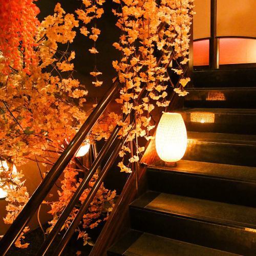 桜の降る階段を降りると和モダンな個室空間♪